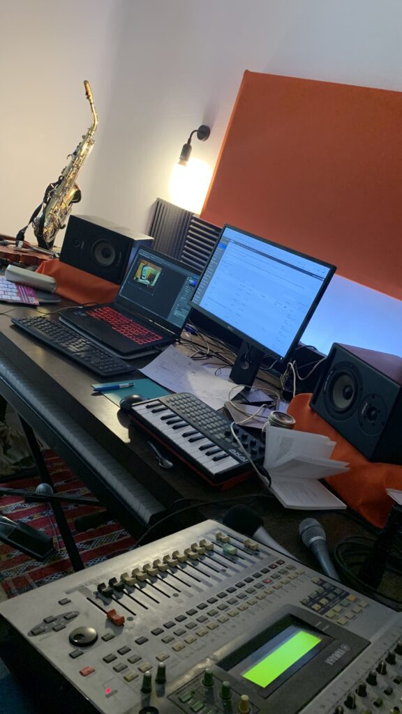 Un espace équipé pour les musicien·nes souhaitant travailler ou enregistrer dans de bonnes conditions.